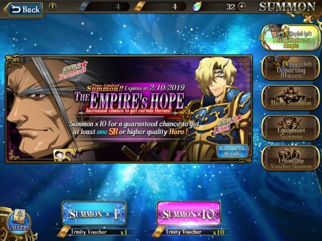 But if you just keep your tickets and Premium Currency instead of doing all the things above and play the game daily for a few more days, you will have 10 Trinity Vouchers, which can be used for a 10x summon. At this point, you are guaranteed a SR character, with increased chances for a SSR.