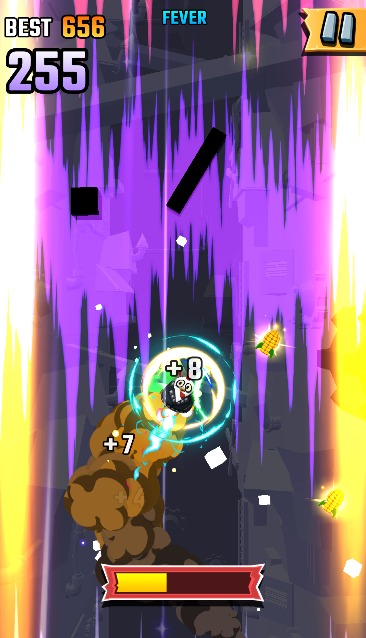 Collect the rocket corn littered around the stages, and your fever meter will fill up. Once it is full, you will enter fever mode where everything is crazy! Grab everything and boost like there is no tomorrow!