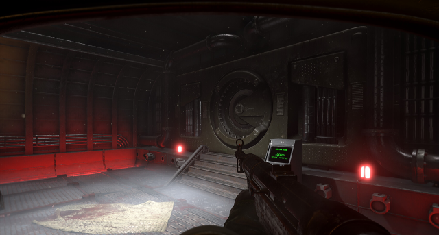 - Take the stairs to reach the lower floor. On the left, you will find a door that says Airlock.