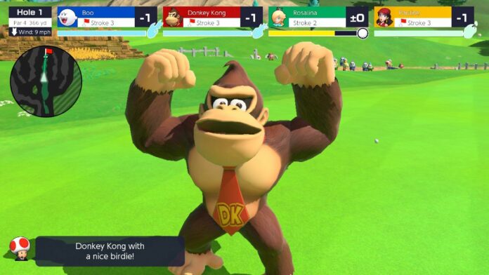 Donkey Kong’s Special Shot is Burly Strike, a special shot that simply blasts away other balls in impact. This ability is best used on greens to blast away the opponents’ balls so as to make them waste time reach the green and putt their balls.