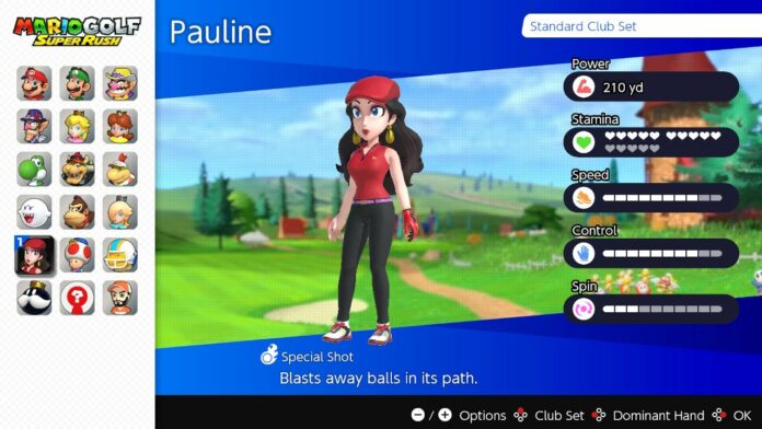Pauline was made popular again by Super Mario Odyssey following her debut in the original Donkey Kong, so it’s not surprising to see her make her debut in the Mario sports series with Mario Golf: Super Rush. The character is among the most balanced in the game, featuring decent Power and Stamina and high Speed and Control, which make her a great choice for all play modes if you like being accurate and extremely effective.