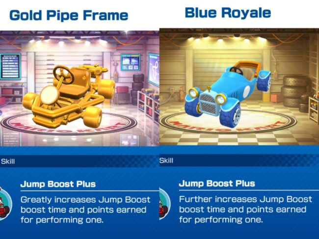 In the Tour Gifts you can unlock Baby Daisy in the Standard Pass and Baby Rosalina in the Gold Pass. Also available with the Gold Pass is the Gold Pipe Frame kart at 100 Grand Stars, and the Blue Royale kart at 160 Grand Stars.