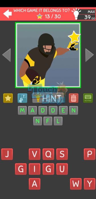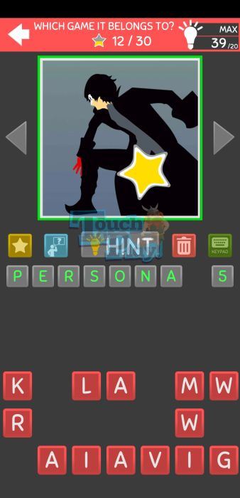 Mega Quiz Gaming – Selectable Characters Level 30 Answer