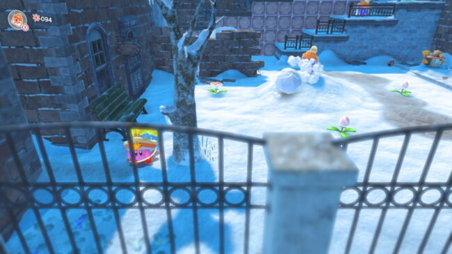 - When you get to the first Warp Star, check to the right of it—there’s a snow sculpture hidden behind the tree.