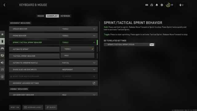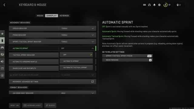 • On Consoles: Enable Automatic Sprint and select Auto Tactical Sprint and customize its behavior in the Gameplay section of the Settings menu. After that, just moving forward can enable Tac Sprint.