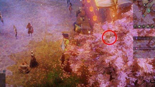For Mokoko Seed #1, you’ll come across a market stand on the right side as you’re entering the night market. This one is a little tricky—the seed itself is obscured by the cherry blossom tree, but you can actually walk behind the stand. You should be able to get close enough for the pickup prompt to appear.