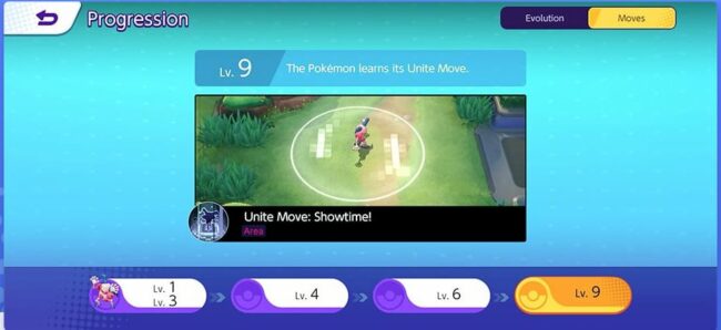 In Pokémon Unite, the Pokémon get new moves as they progress their level. Generally, at Lvl 5 and Lvl 7, players have to choose a new move for the given Pokémon from a choice of two. At LVL 9 players get the Pokémon Unite move.