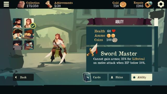 You can choose your character between the 6 currently available, each bringing a unique look (and skill) to the table! The available characters each carry a skill and a deck, specific to themselves and powerful in its own way.