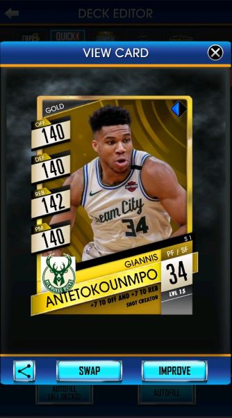 Card Traits: During the game, before you chose your card, check card traits. For example as you see in the picture below Giannis Antetokounmpo (Gold) will get a boost Offense and Rebounding once you put him in the game.