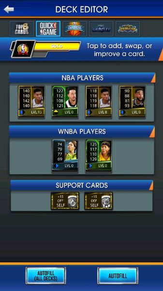 Here is where you get to build your teams for each game mode: Quick Game, Champions, Gauntlet, and Domination.