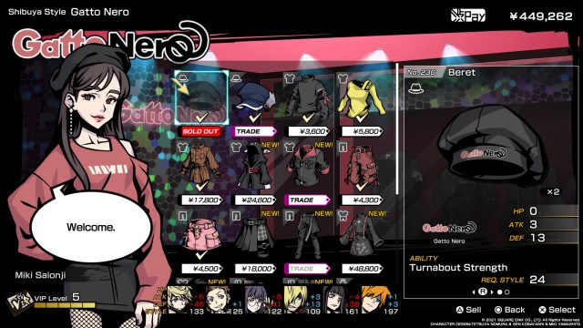 Beat’s best Threads aren’t as good as those available for other characters, but they do make up for their lower stats improvements with their abilities. In terms of raw stat improvements, the best item for Beat are the Bondage Shorts from Tigre Punks in Tsutaya O-East, which comes with the ATK Boost IV ability, activated with 150 Style, +78 HP, and +105 Defense.