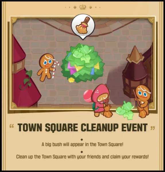 This is a more relaxed event, where players must work with friends to clean up the Town Square. At the end, players can claim various rewards.