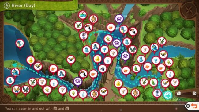 Mightywide River is, unsurprisingly, full of mostly water type Pokemon, and players will need to reach Research Level 3 before being able to discover all the Pokemon hiding in this course.