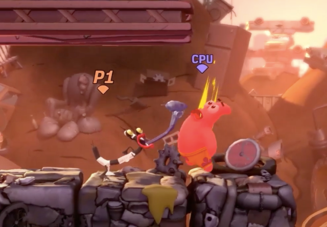 Oblina is small and agile, and uses plenty of projectiles to damage opponents. Her skills include limiting her opponents attacks and movement with her specials, and dealing damage while they are confused or trapped. Oblina’s stage is The Dump, a medium-sized stage with three moving platforms that will disappear periodically, taking with it anyone who is standing on there. The platforms lower from each side and the middle of the stage, helping Oblina utilise her mobility and quick-thinking.