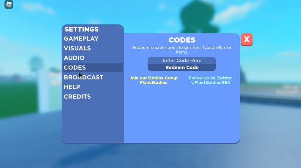 MarchTOTHEMOON: Redeem this code to claim 1,5k Tycoon Bux~PLANTSTUDIOS25KAY!~:PS_5thAnniv!: Redeem this code to claimTycoon BuxBeautifulSummer: Redeem this code to claimTycoon Bux~PLANTSTUDIOS25KAY!~: Redeem this code to claim Tycoon BuxBeautifulUpdate2: Redeem this code to claimTycoon BuxRTHRO: Redeem this code to claim500 Tycoon BuxQUARANTINE2: Redeem this code to claim 5k Tycoon Bux