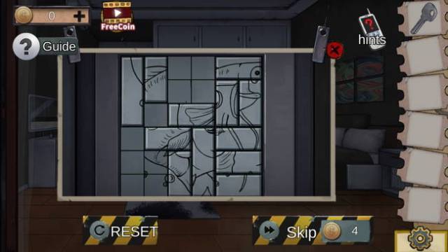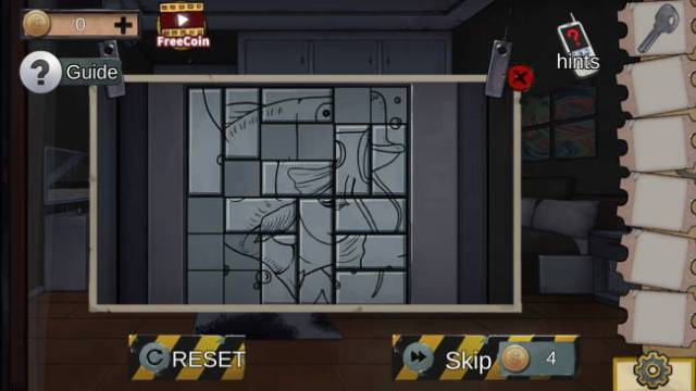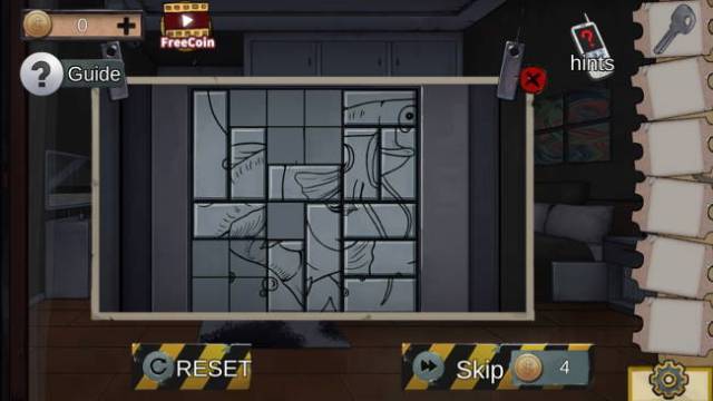 Examine the dresser on the right side and use the hexagram metal block to reveal a sliding tile puzzle.