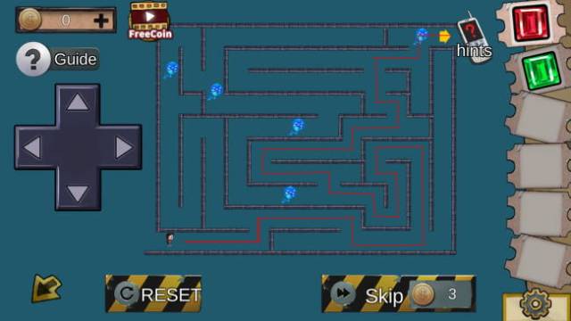 Examine the crate next to you to a get red crystal. Climb up the ladder and push the red button, then walk all the way to the right until you see spike traps on the floor. Watch the pattern carefully then cross when it’s safe to get the green crystal. Move right a bit more to find a console with a maze puzzle in it. Careful not to touch the blue jellyfish things.