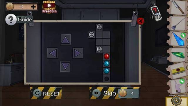Examine the sheets for a strange pattern. Open the rightmost closet door to reveal a puzzle. Your objective it to hit all of the arrow beads and then return to the black hole.