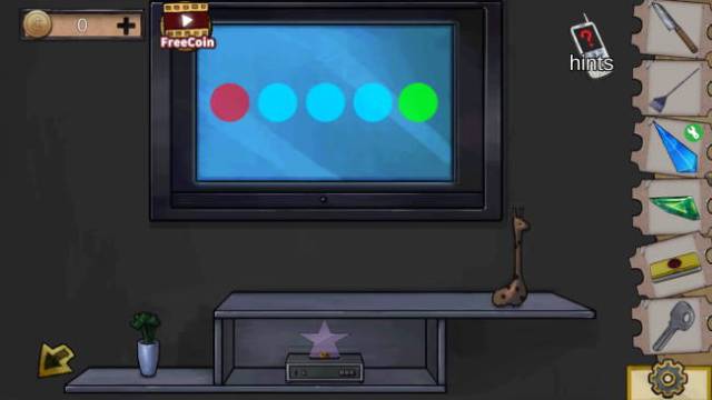 You’ll get the other half of the plastic piece, so combine them to get a plastic sheet. Examine the TV and you’ll see a top box with a slot – use the plastic piece and the TV will display a color code for the puzzle on the bottom floor.