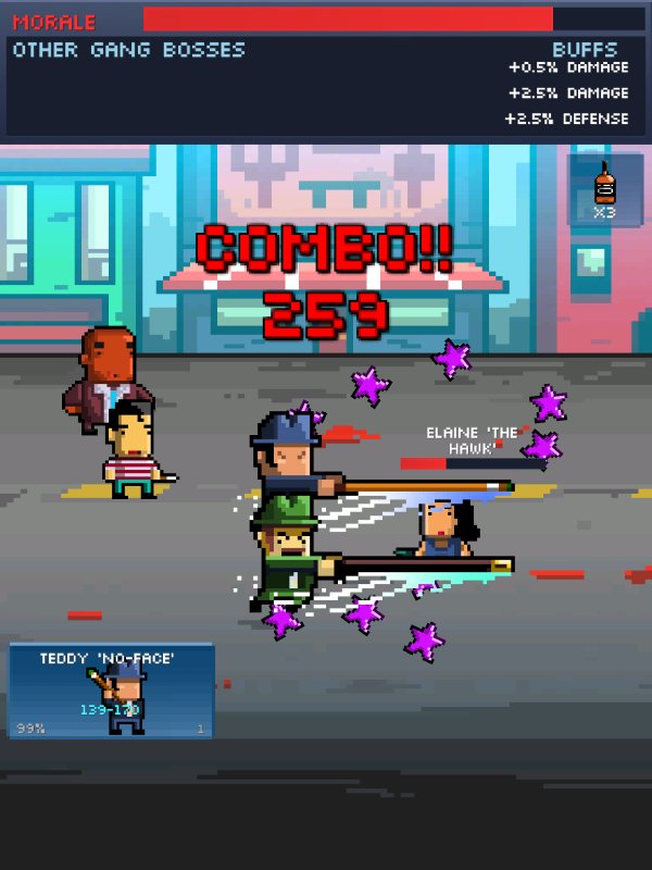 As it probably sounds, even though funny, Pocket Mobsters does not offer a huge deal in terms of variety. The combats are pretty repetitive: you need to spend energy in order to start a fight mission, then you simply select your best performing gang members in a turn based system, hoping that your enemies run out of health before you do. Rinse and repeat, rinse and repeat – this is how you build a true mob empire!