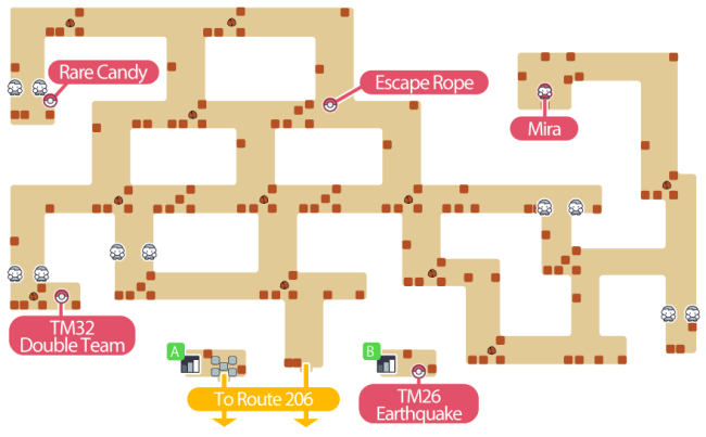 Wayward Cave has two floors and each of them has a unique map. Here is the map of the first floor of Wayward Cave in Pokémon Brilliant Diamond and Shining Pearl: