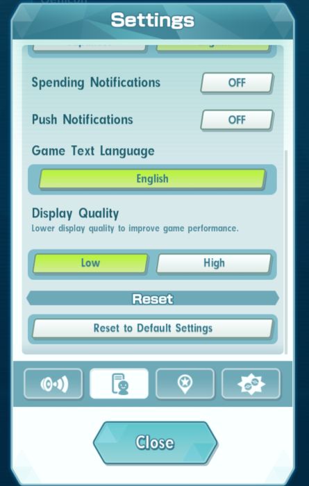 Log in to Pokemon Masters and go to the game’s settings by tapping the phone icon in the lower right corner, then the Settings icon. There, as a temporary measure, turn off all sounds and also set the Display Quality to “Low” if it is on “High”.