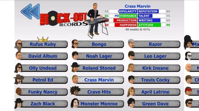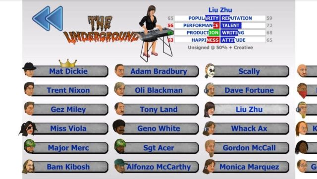 These would be all the artists currently available in MDickie’s Popscene! Go ahead and sign the ones which didn’t sign yet with any records, and start producing your own music! You can check their current status by looking underneath their stats!