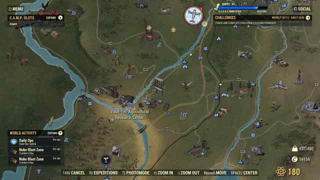 Here is a map screenshot that shares the location of the Vault-Tec Agricultural Research Center, a great location for new players who are between Levels 1 and 5. However, you don’t have to worry about enemy levels, as they are based on your current level, with some exceptions.