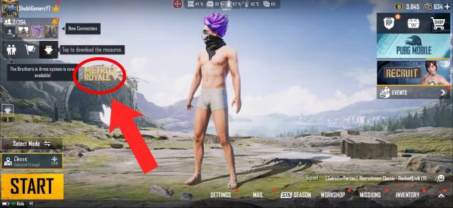 - Once the download completes, head over to the mode selection menu and select Metro Royale mode.