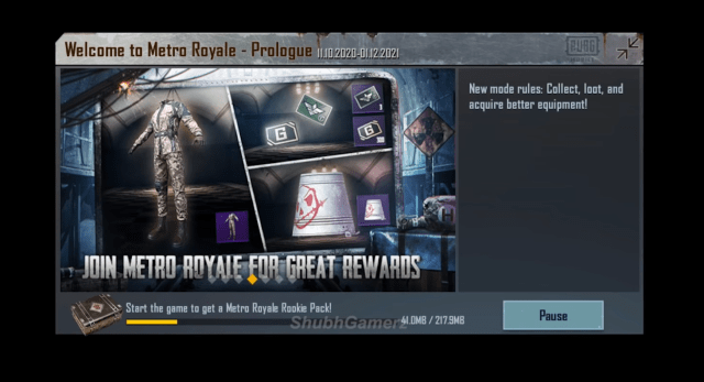 - Download the Metro Royale mode, which is around 217MB.