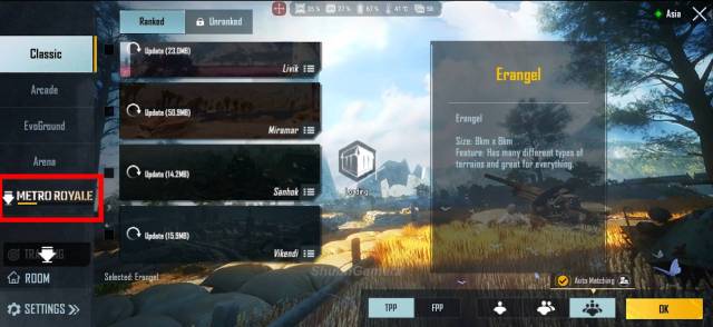 - Once the download completes, head over to the mode selection menu and select Metro Royale mode.