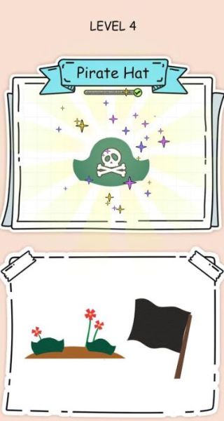 Drag the bush from the left to the top, and then drag the skull on top of it to form a pirate hat!