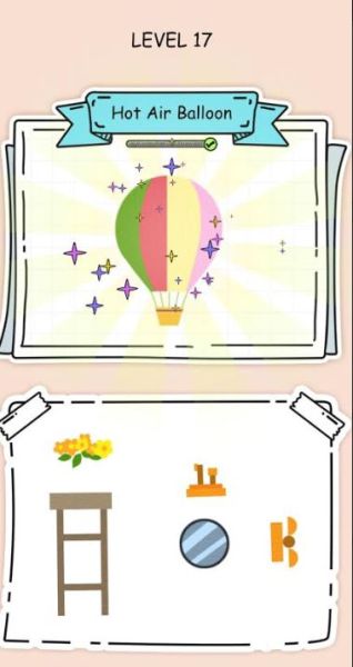 Drag the submarine body from the right to the top, and rotate it 90 degrees clockwise, then drag the flower pot underneath it to form a hot air balloon!