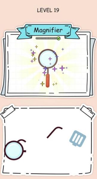 Drag the right lens of the glasses to the top, then drag the spatula handle underneath it and rotate it to be straight to form a magnifier!