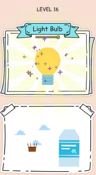 Drag the yellow balloon from the left to the top, then drag the water bottle lid underneath the balloon to form a light bulb!