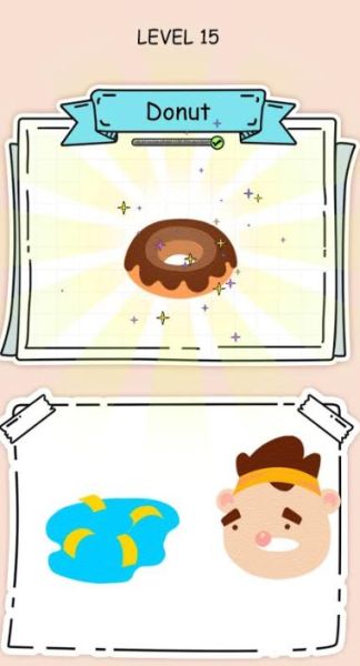 Drag the lifebuoy from the left to the top, then drag the man’s beard on top of it and flip it up side down to form a donut!