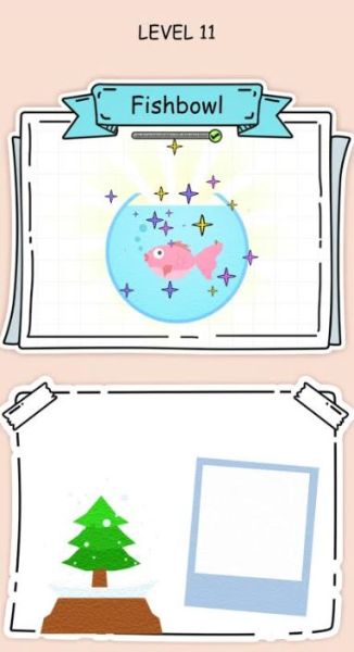 Drag the glass globe from the left to the top and flip it up side down, then drag the fish from the right side on top of it to form a fish bowl!