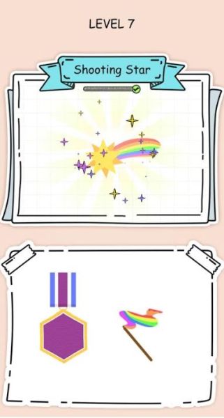 Drag the star from the left to the top, and then drag the rainbow ribbon on top of it to form a shooting star!