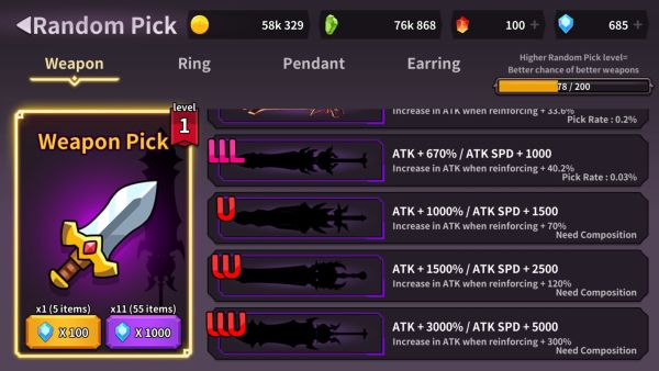 In order to ‘Pick’ gears you need to spend Diamonds. There are more than one ways to earn Diamonds. Infinity Tower will reward you with Diamonds and Reinforcing Stones (you need those to Reinforce your Angel’s gears) every time you complete a stage. Daily quests is another way of earning Diamonds along with Repeating Quests.