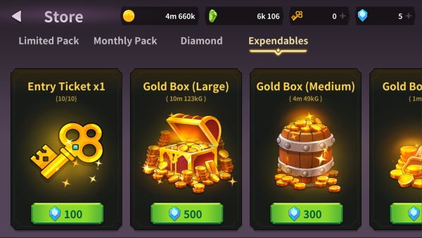 Whenever you can, spam Arena. Not only you will earn gold (regardless win or lose) but you will also get Entry Tickets by completing the Repeating Quest. Use the Entry Tickets to challenge Infinity Tower.