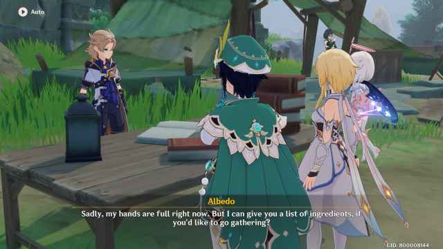 Albedo will ask you to gather some materials to make Windblume flower. Sadly, this part of the quest for me was instantly completed, maybe because I already had the item in my inventory.