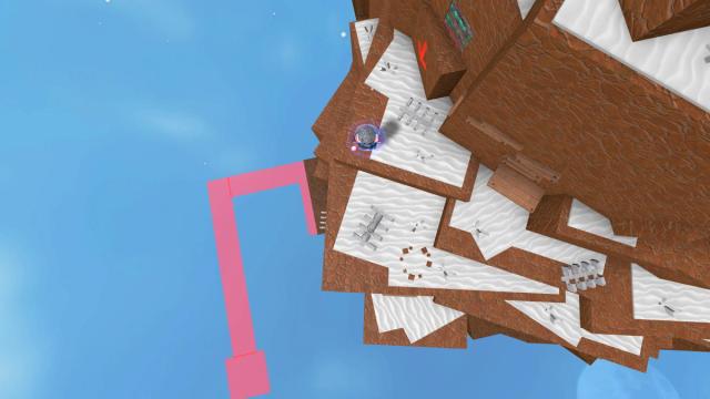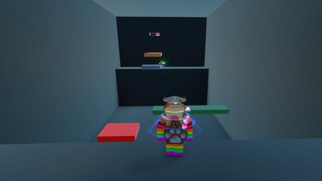 Once you make it to the platform, your screen will get all glitchy—this is normal! After a second, you’ll find yourself in a new room with a short but difficult obby in front of you. Complete the obby to reach the Glitch Marker on the other side of the room!
