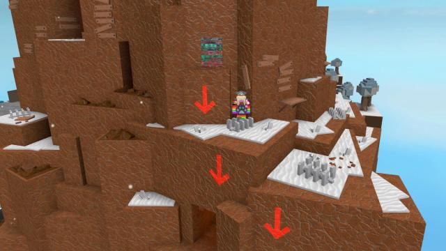From the spawn point, turn around and head towards the mountain biome. On the front side of the mountain, there’s a wooden ladder you can climb up. Climb up, but don’t climb up the second one—instead, hug the left side, and you’ll see another smaller ladder you can climb up.