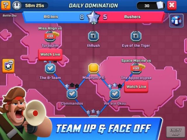 But ever for the Team Dominations, solid alliances are really making a difference: you set up three defense bases that will be put to test against another alliance, with the catch being that you are given random units to use.