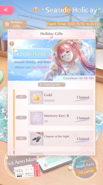 Don’t forget to go to all the parties (3 a day) to earn even more Gold, Memory Tracks, and Memory Keys.