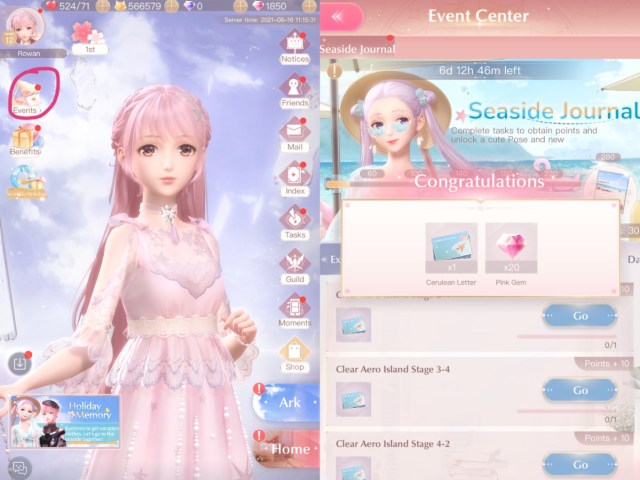 As with every new event comes a new summon page and this time stylists are offered two stunning outfits they can try to complete by spending Cerulean Letters. Cerulean Letters are available to purchase with Pink Gems or as rewards for completing stages- these rewards can be accepted in the Event Center.