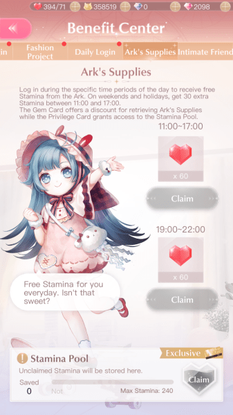 • Gain stamina from Ark’s Supplies for free, and activate the Stamina Pool