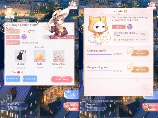 When you enter the Main Story and choose a stage to complete, Momo is there to help you. Tap on Momo’s Guide to see your current styling power compared to what you need to achieve the Best Styling Power.