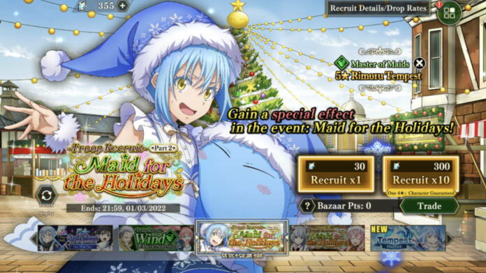 Every time you recruit during this event period, you’ll earn bazaar points equal to the amount of recruits you performed. So, a Recruit x1 will net you one bazaar point. You can exchange 200 bazaar points for Master of Maids Rimuru Tempest. Although, keep in mind that this comes out to a whopping 6,000 Magicrystals.