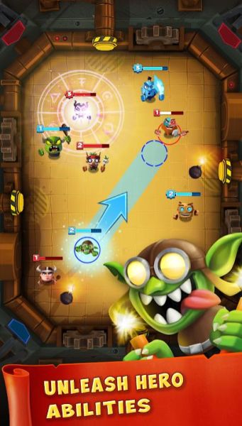 It’s best if you think ahead on the moves you and your opponent can make, and use them to make a strategy. For example, think of what you can do to make the opponent end up with his strongest hero between 3 of your heroes which can then bounce to destroy it in seconds.